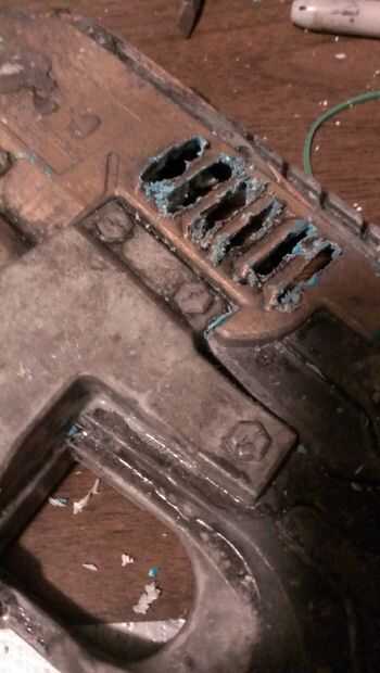 Una vez que las líneas están marcadas, utilice su fabricación Sierra para cortar hacia fuera. Ser muy cuidadosos y esperemos hacer un mejor trabajo que hice, y tienes una concha muy bien.