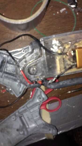 Poner las partes internas de la detrás donde se encontró y busto hacia fuera los cables, o en mi caso, cinta de la hoja. Comenzar por encontrar un lugar donde una batería podría poner y colocar. Te recomiendo la de 9 voltios, para una mayor duración, pero usted puede necesitar resistencias. Mientras estás en ello, tambien el cable el interruptor de palanca.