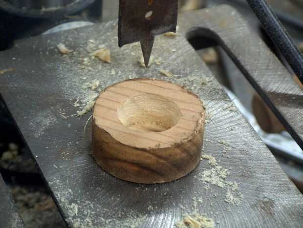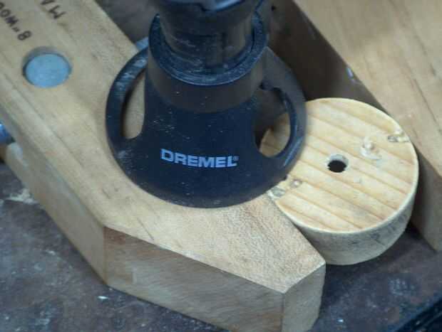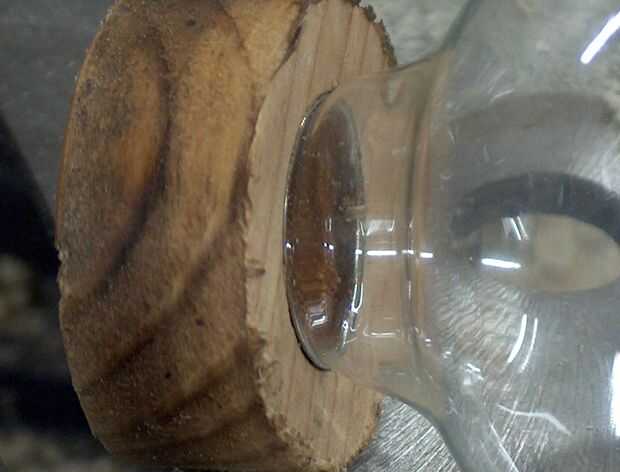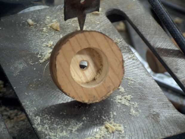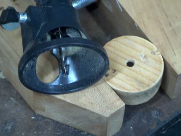 Ahora que tienes la pieza circular de madera corte su tiempo lo vicio y utilizar una velocidad llevaba poco en él. Asegúrese de marcar la profundidad de la broca o taladro para no perforar todo el camino a través del cilindro. Simplemente marca la profundidad los hilos metálicos en el bulbo van y comienzan a taladrar hacia fuera el centro. Una vez han perforado hacia fuera de una ranura para su comprobación de la bombilla para asegurarse de que encaja correctamente y ajustar en consecuencia.