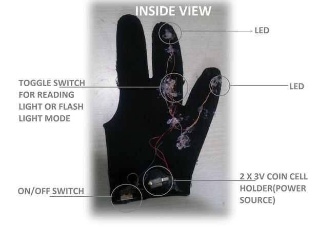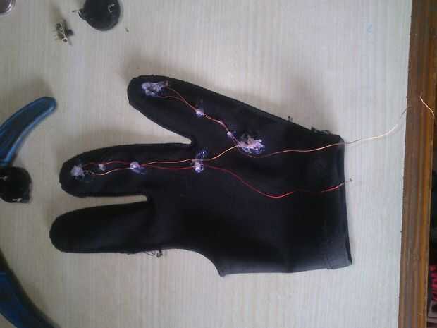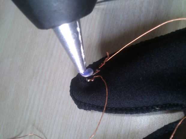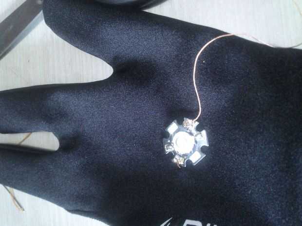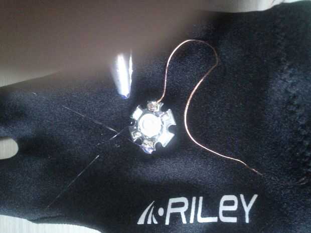 • Inserte 1 vatio LED del lado de la palma del guante, caliente encolarla.
