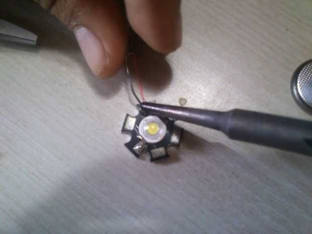 • En primer lugar de la soldadura de los cables de los leds. (como se muestra en la imagen)