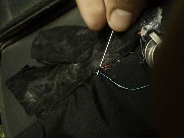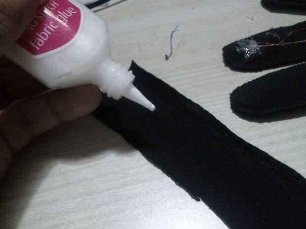 Esta parte solo necesita algunas colas de tela, un trozo de tela negra y una aguja con hilo negro.