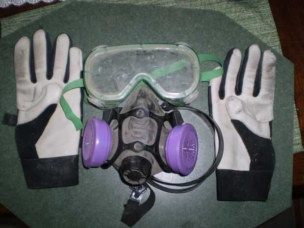 Asegúrese de que tener seguridad adecuada del engranaje. Gafas para protegerse los ojos, guantes para proteger tus manos y una mascarilla para proteger sus pulmones deben usar.