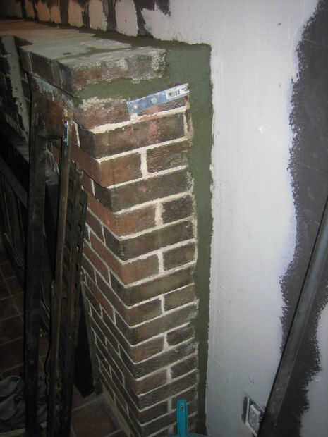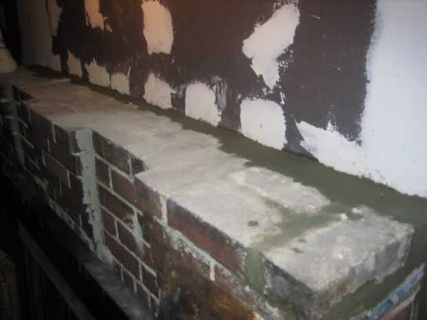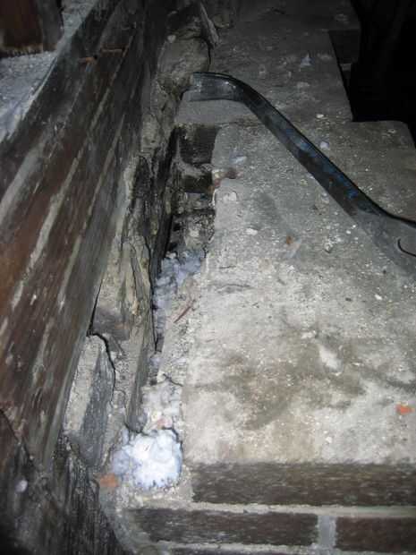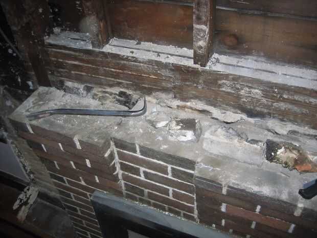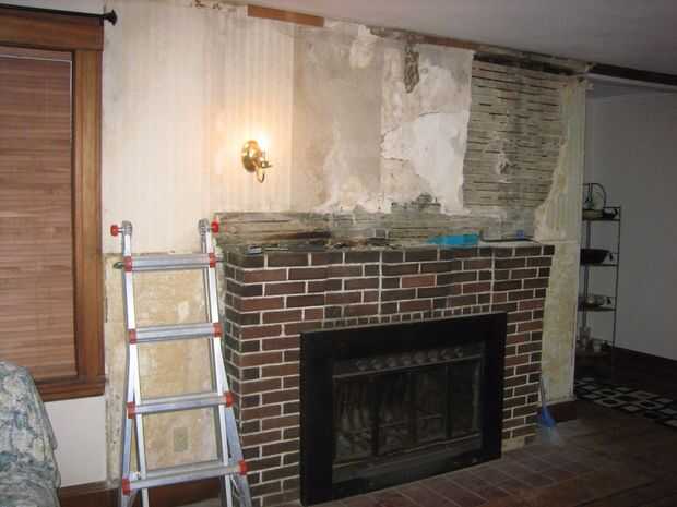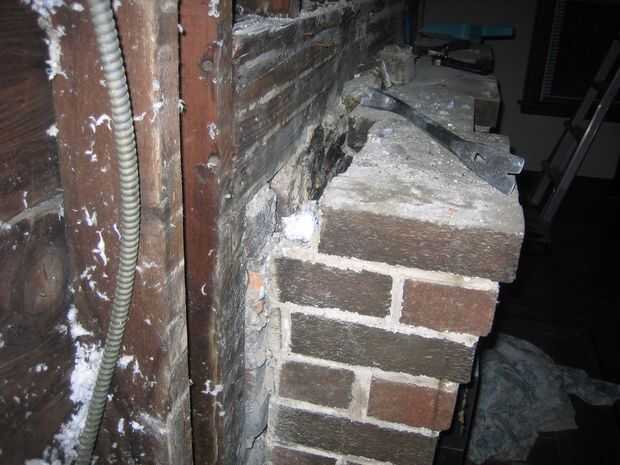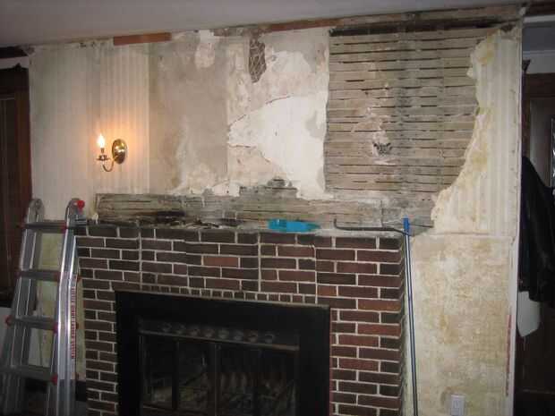 1. destruyó toda la pared y mortero de ladrillo todo suelto de la repisa de la chimenea/surround.