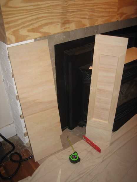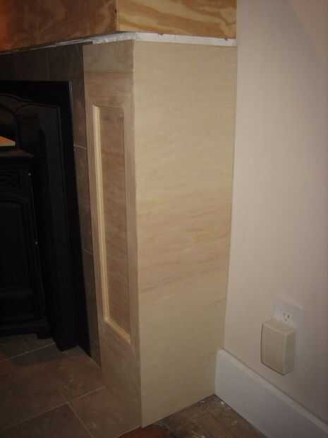 Los paneles frontales fueron pegados y brad clavados a unos listones, que se une al ladrillo con adhesivo de construcción. Los paneles laterales fueron Unidos con adhesivo de construcción en los ladrillos, así como la madera pegamento en los ingletes borde con unos clavos del clavito.