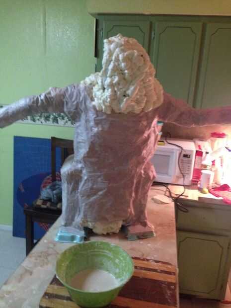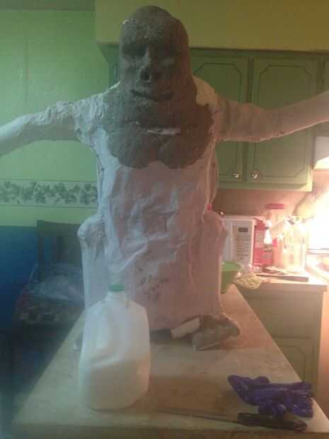 Yo también desmenuzado algún papel para usarlo como plastilina para moldear el pecho y la cara del gorila.