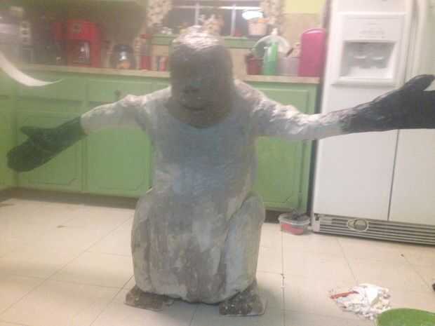 Ya que iba a utilizar el aerosol para pintar el gorila procedí a pintar en este paso porque la pintura de aerosol más derretimiento espuma de poliestireno.