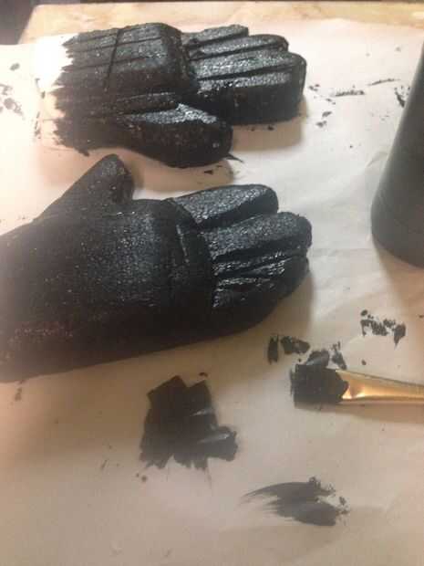 Después de la pintura seca en las manos, os los adjunto con pegamento caliente y más periódico para darle forma.