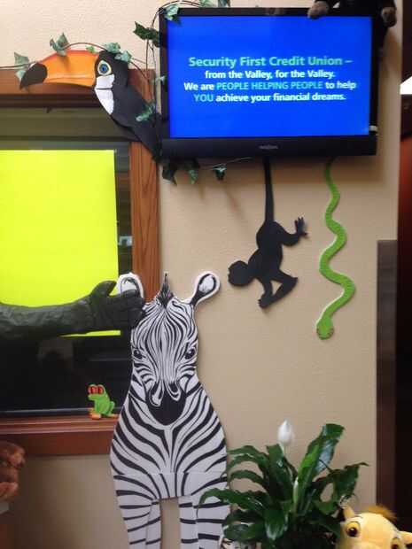 Algunas de las chicas en la oficina de trajo en plantas y animales de peluche para llenar la escena de la selva.