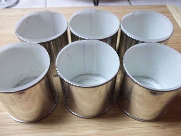 Prepara tus moldes, ya sea por engrasar y enharinados (o usando el aerosol que ambos pasos como una vez) o por completo los forro con papel de pergamino. Los fondos de las latas deben ser forrados con discos de pergamino que se han cortado para caber dentro. Para ello, traza el exterior de la can en pergamino y corte de ¼" dentro de la traza.