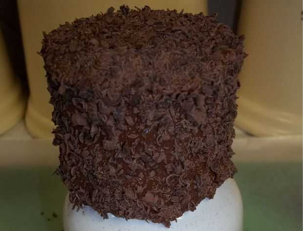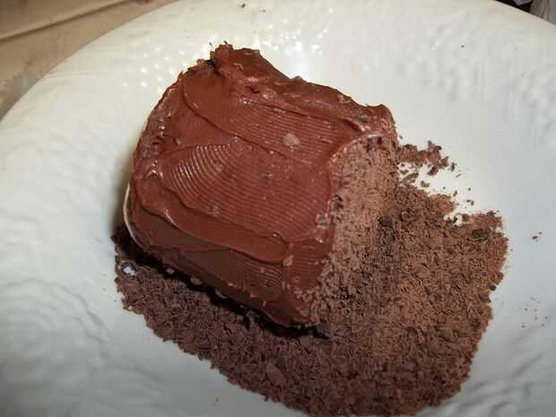 Helada de la parte superior y los lados de su torta con cuidado. Creo que funciona mejor si usted helada desde la parte superior hacia abajo. Entonces, antes de la cubierta fija, mantenga el pastel helado sobre el chocolate rallado colocando la parte inferior en la mano o con una espátula. Cuchara de ralladura de chocolate sobre ella el pastel. Luego coloque el disco de papel de pergamino de repuesto en la parte superior (para evitar tocar el chocolate rallado y ponerlo en las manos) y rápidamente la torta a su lado en el chocolate rallado suelto. Cuchara de chocolate por los lados hasta que estén cubiertas, girando un poco la torta si necesario. Utilice el disco de pergamino otra vez para ayudarle a recoger su pastel y colóquela en un plato limpio o plato.
