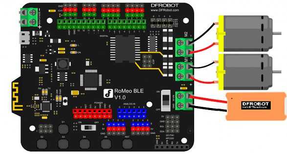 Este regulador es uno de los muchos sharp colisiones y combinaciones perfectas entre Bluetooth 4.0 y Arduino, hereda todas las funciones del controlador RoMeo y agregando en la tecnología de comunicación inalámbrica Bluetooth 4.0. Es apoyado por miles de fuentes abiertas y puede ampliar fácilmente el módulo Arduino. Este módulo integra el motor de C.C. de dos caminos y una conexión inalámbrica de salida, proporcionando así una manera más fácil de empezar un proyecto. El circuito controla el movimiento del motor al recibir señales a través de Bluetooth.