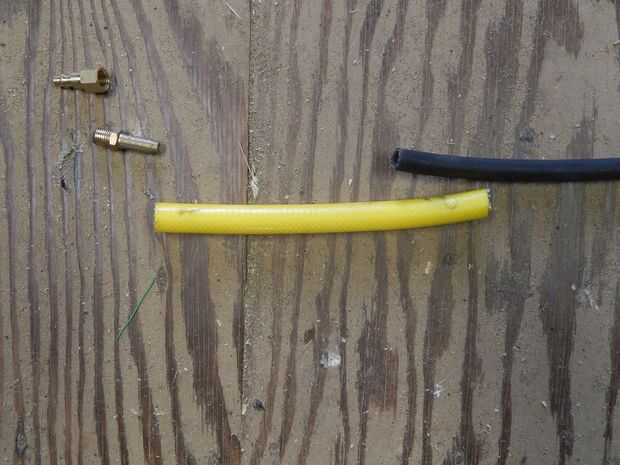 Mi manguera compresor falla a menudo. (Este es un ejemplo de instructables: fijación un prensado compresor manguera gluefish generalmente es a los conectores. Este es un problema común porque al tirar de la manguera las fuerzas tienden a centrarse en el área alrededor de los conectores. Usted pudo haber visto secciones cortas de manguera de jardín con un resorte o alambre alrededor de él para reducir la tensión en el extremo de la manguera. Aquí añadir una sección corta de la manguera vieja para proteger la manguera del compresor. Las fotos hacen bastante obvio.