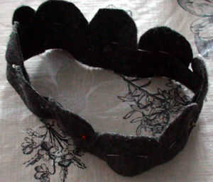Utilicé la caja redonda que las agujas vinieron en de cortar los semicírculos, se puede utilizar algo diferente.