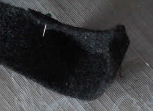 Para hacer esto que vas a tener que envolver el borde de la tela larga alrededor del borde curvo de una de las pestañas, pin en su lugar y hacer lo mismo con la segunda pestaña.