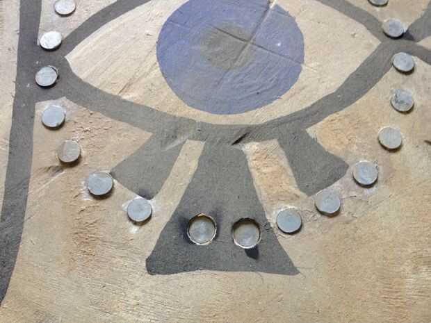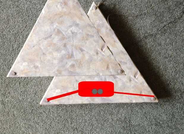 Punto de decisión... Evaluar cómo mejor puede ocultar los polos del imán. Quería el tirón más fuerte posible así que dejé los polos expuestos. Terminé con un tirón bastante débil incluso todavía. Tuve suerte en que los polos se parecían la cabeza de un clavo del material para techos de aluminio, por lo que coloca un número de clavos ficticios alrededor en un perímetro para ocultar los polos. Mirando hacia atrás puedo han perforado pequeñas hendiduras en la madera para que coincida con los polos y pintado de los postes. De cualquier manera tienes que ocultar los polos como mejor puede.