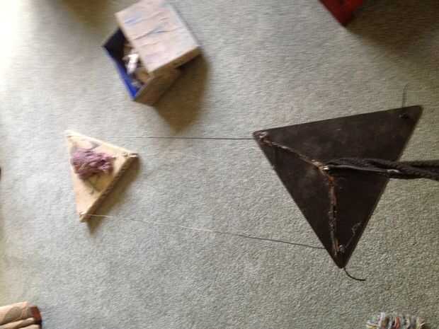 Fabricación de ganchos de alambre de cobre para hacer una conexión eléctrica. Oculta la conexión con cadena y hotmelt pegamento del yute. Tenga en cuenta los conectores que tienen el poder tienen la espalda soldada juntos por lo que te puedo decir fácilmente que ganchos van a la conexión (cables frontales) de la piedra. Sería lamentable que el espíritu nunca demostró para arriba a trabajar!!!!!!