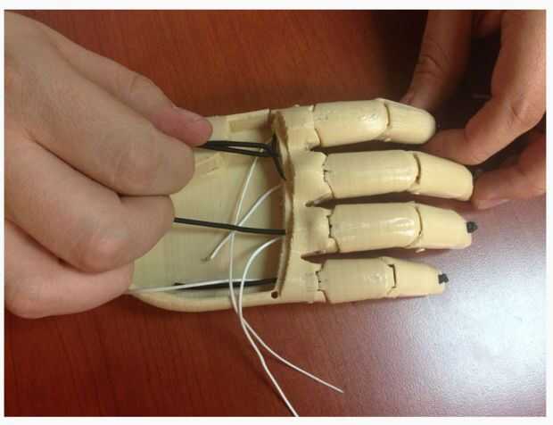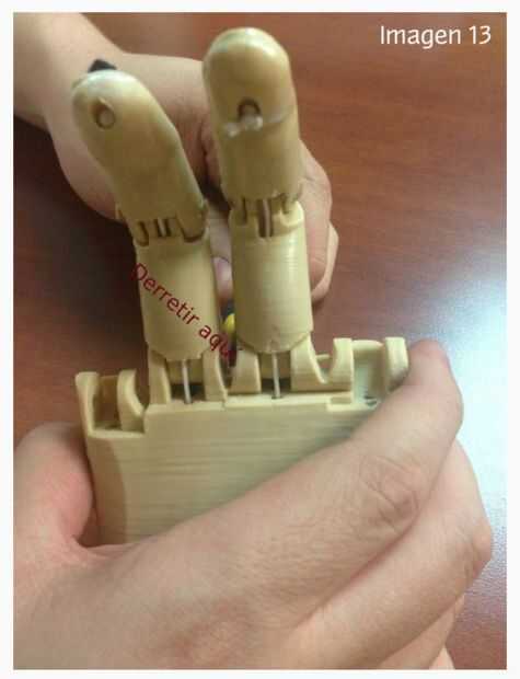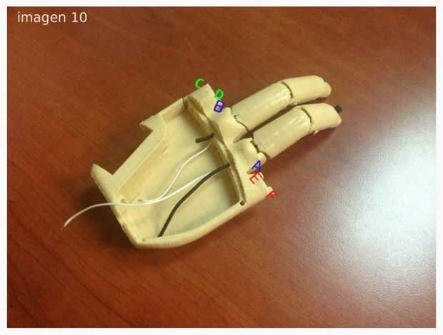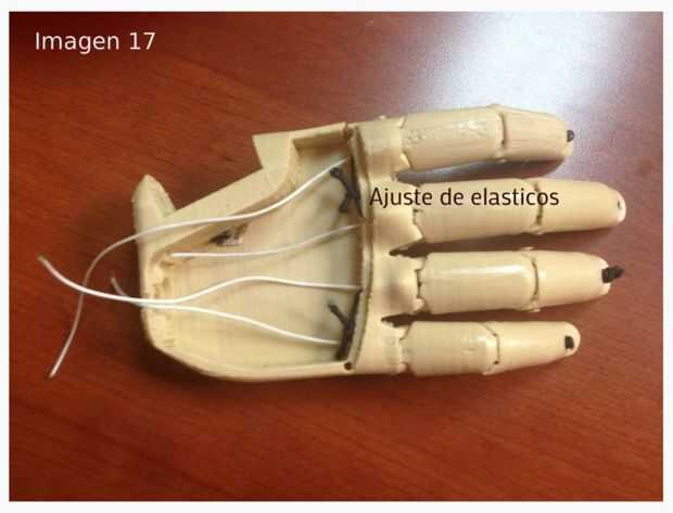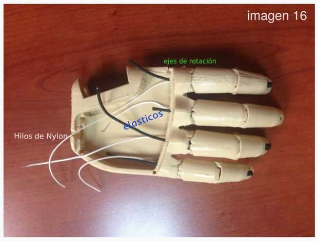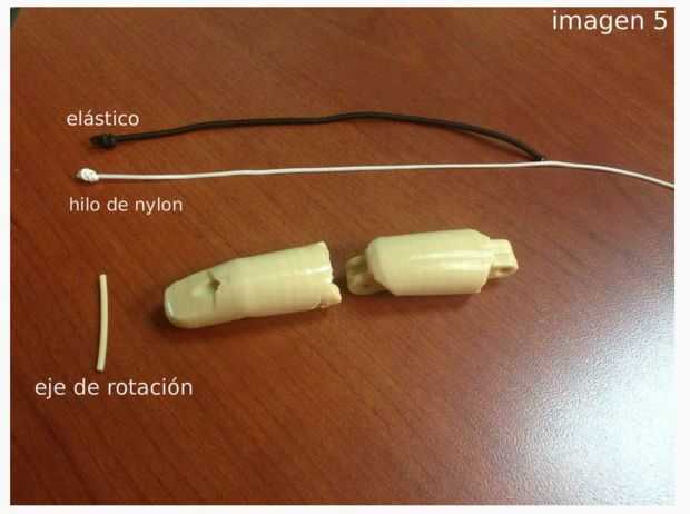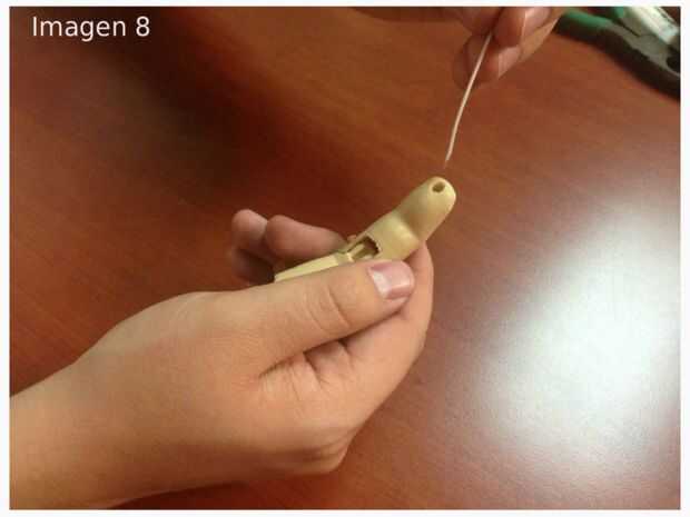 2. montaje el hilo de Nylon en lengüeta de la falange distal que permite la flexión. Imagen 8