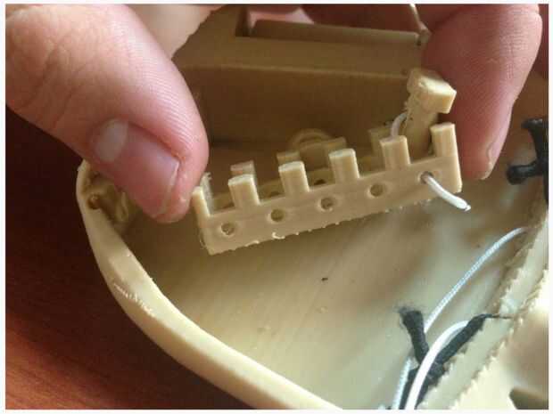 1. en la Imagen 1 se muestra la pieza FineClose.STL, aquí hay atravesar los hilos de nylon de los dedos desde el Agujero 3 pasando por el agujero de la pieza Holder.STL 2 y terminando en el agujero 1, como se muestra en la imagen 2 al finar realizar un nudo para sujetar el hilo.