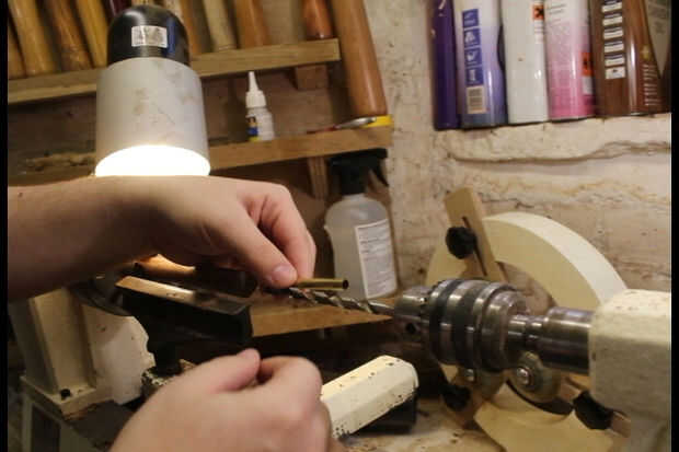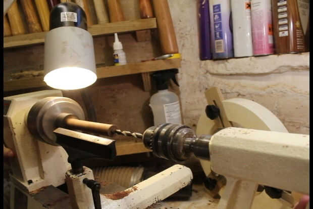 Luego perforé a esta medida manteniendo la broca en el mi chuck de Jacobs que cambié hacia fuera desde el centro vivo.