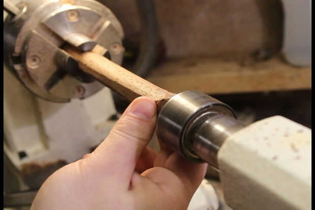 Me centré la madera en el mandril con el punto central de unidad como guía.