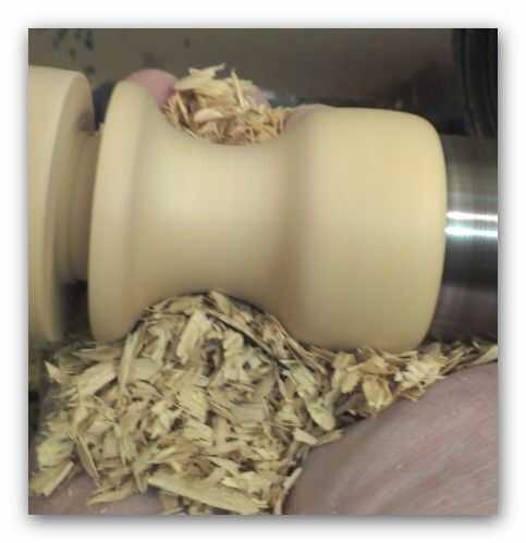 Una vez que haya terminado de dar forma a la pieza, algunas de las virutas de llegar desde el piso (ya debe tener bastantes) y cuidadosamente en la pieza de giro. Esto tiene el efecto de la eliminación de la mayoría si no todos los arañazos en la madera y te queda un acabado muy suave.