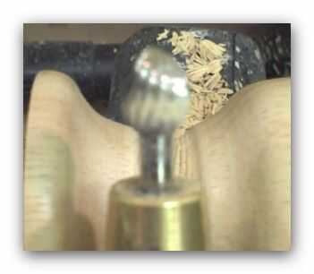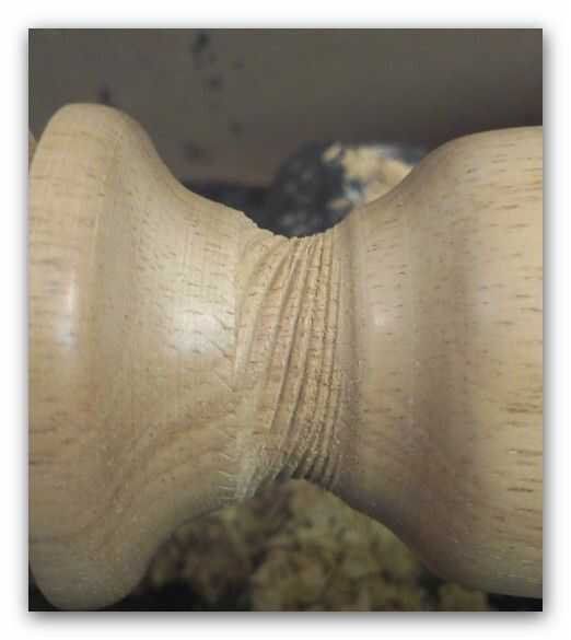 Cuando estaba contento con el acabado de la pieza utilicé un escoplo otra vez para quitar el resto de la madera.