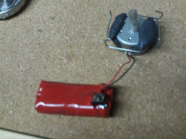 En primer lugar, tomar las 2 pilas AAA y se alinean con los polacos de la segunda frente a la primera. como en cualquier caja de la batería. Cortar un trozo de papel de aluminio el ancho de las 2 pilas y cinta en. Luego tira de los cables del motor, con el positivo dos veces como mucho. cortar un rectángulo de papel de aluminio del mismo tamaño que el que grabó a la parte inferior de las pilas. Ponga el cable positivo en el centro y doble encima. Ahora doble el extremo del alambre. Esta cinta sólo al final positivo de tu batería pack firmemente. Soldar el extremo del cable negativo del motor al interruptor momentáneo. Ahora soldar una longitud corta de cable al otro cable del interruptor y envolver en papel de aluminio como se hizo en el positivo. acabado por grabar todos juntos en un apretado paquete pequeño.