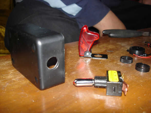 1. escoger un lugar en la caja de prueba para el interruptor. Tenga en cuenta que tiene que caber todo en la caja y cerrarla así que habitación de licencia para la batería, el zumbador, los cables, y cualquier contrabando que estimes necesario ocultar.