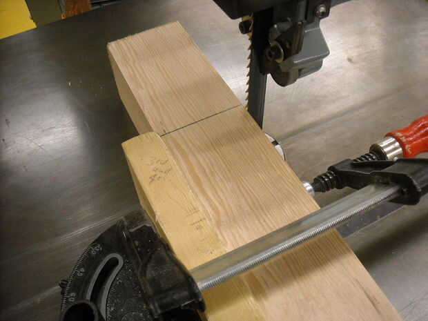 Configurar la sierra con una guía deslizante y una abrazadera. Mostrar a los niños cómo marcar de 5" y corte. Animar a los estudiantes a tomar su tiempo y reducir poco a poco para que el corte sea recto. Puede utilizar cualquier Sierra que desea pero encuentro las obras de Sierra de la venda bien. Utilizar la "regla 5" que es: