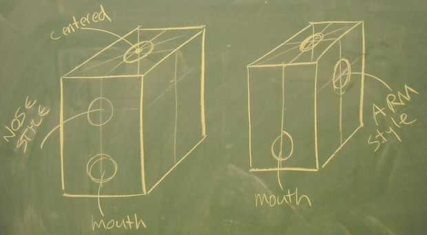 Diseño de una línea central a lo largo de la parte frontal y superior. Los niños pueden elegir en este momento si quieren el pasador de giro que dispensa los chicles desde el lado o la parte delantera. Yo lo llamo "nariz" (frente) y "brazo" (lado). Si usted quiere puede limitar las variables de diseño para mantener simple o ir todos hacia fuera. Una vez tuve un grupo de chicas Bellas Artes que hicieron las más increíbles máquinas gumball con todo tipo de diseños creativos. Una chica hizo una máquina de chicle que era un árbol... el mecanismo de giro estaba en el lado disfrazado como una rama con un columpio que cuelga de él. Como ella dio vuelta el dispensador la cadena terminó y había levantado el columpio. Impresionante diseño.