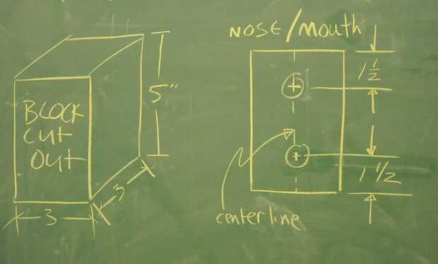 Una vez que los niños decidan, centros de diseño el agujero. La nariz (o brazo) está centrado en 11/2" hacia abajo desde el borde superior y la boca es 1 1/2" de la parte inferior. Marque el agujero superior donde los chicles van en centrado en el centro de la parte superior. Lo explican con dibujos en el tablero que mover a los niños a una tabla y demostrar realmente. Si tienes cualquier niños en su clase que tienen necesidades especiales y podrían encontrar medición difícil; establecido antes de la mano con ellos como un demo. No señalarlo... mayoría de los niños no quiere ser tratados diferentemente de los demás. Todo sobre inclusión!