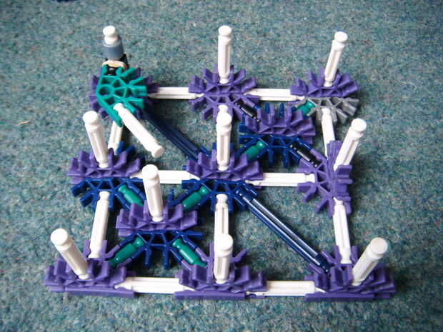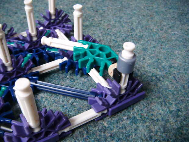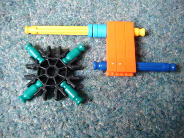 6. Deslice el conector blanco y 1 azul espaciador y 1 separador de plata en la barra amarilla como se muestra