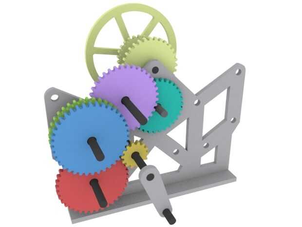 Cada uno de los grandes engranajes están conectadas a un engranaje más pequeño en el otro lado. Más específicamente, los engranajes son los siguientes: