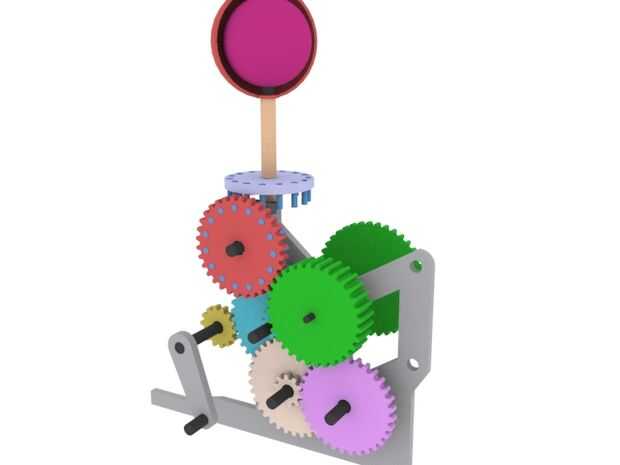 El púrpura, el verde y el equipo rojo todos tienen el mismo número de dientes y por lo tanto, giran a la misma velocidad. La razón por la que hay tres en vez de uno es que la pantalla lunar y la entrada al siguiente mecanismo gire en la dirección correcta