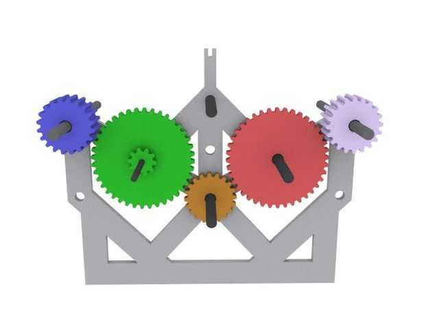 Ahora calculamos el ángulo de la eclíptica lunar. El verde y el amarillo claro son la salida de las calculadoras de fase y la fecha. La salida de la calculadora de fase gira el portador en el engranaje planetario, y la salida de fecha gira el engranaje anular. El engranaje planetario salidas entonces el ángulo de la eclíptica lunar a través de la marcha del sol.