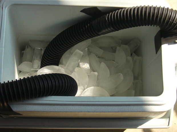 .Taped la manguera en su lugar en la parte superior del pecho de hielo