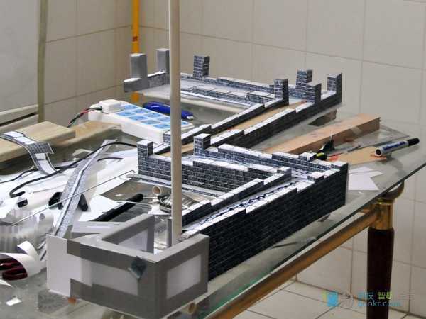 Se puede ver desde Google Sketch Up, sólo el tercer nivel de la torre izquierda está en el nivel más alto para el modelo de toda 'cascada'. Este diseño es para facilitar la caída del agua y por lo tanto para hacer una gran impactación contra la noria.