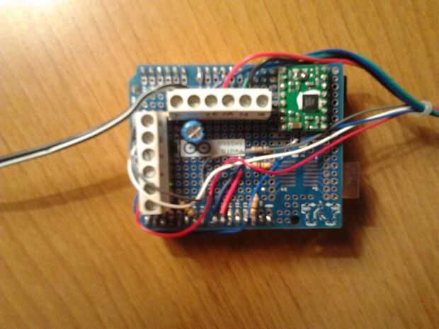 En el escudo de prototipo montar el controlador paso a paso y la electrónica simple para el led y el botón.