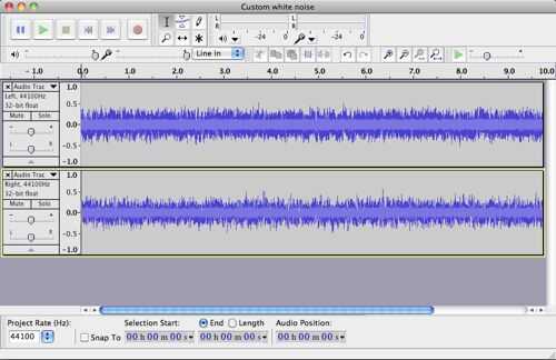 Mi archivo de ruido personalizado final fue una hora de duración, que podría ser colocado indefinidamente durante toda la noche, o día. También hice otra variación "deriva a dormir" que se descoloró lentamente hacia fuera después de 20 minutos.