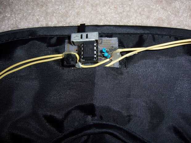 Para montar el PCB cortar una de las piezas de tela y sólo se deslizó el PCB entre los 2 trozos de tela.