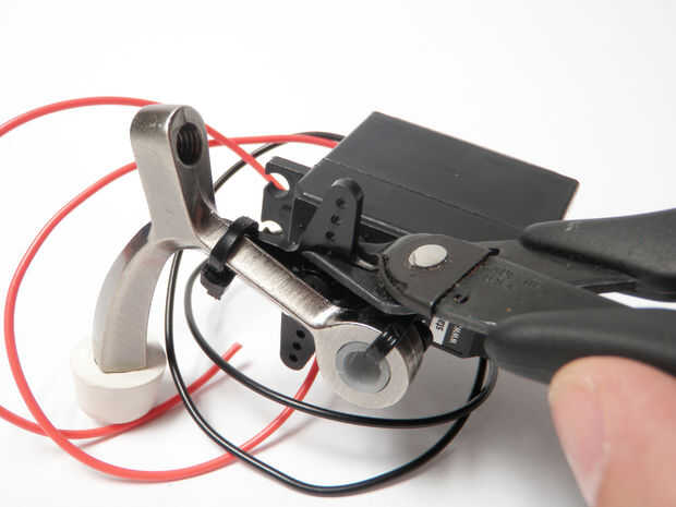 Cuando haya terminado, recorte las partes innecesarias de los vínculos de cuerno y cremallera servo con cortador diagonal.