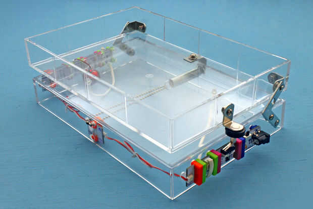 Sea lo que sea que seguir olvidando, este proyecto puede ayudar. Combina una selección de piezas de de littleBits Kit Premium con algunas piezas comunes de hardware estándar para crear una máquina de pick-me-up-and-take-me-with-you automática. Poner sobre una mesa, la puerta, poner las cosas que desea recordar dentro y encenderlo. Si empiezas a salir sin una presa encima de tus cosas, suena una alarma para recordarle que debe agarrarlos y sigue sonando hasta que usted haga.