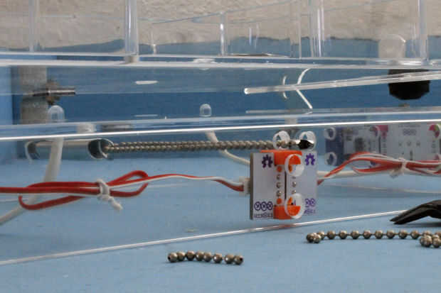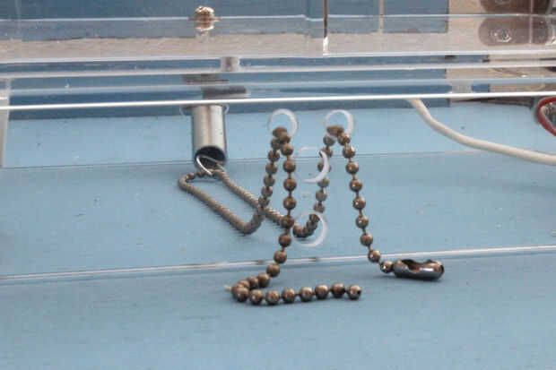 Alicate corte lateral para progresivamente acortar la cadena de la bola hasta que la tensión del resorte es correcta. La bisagra fiable debe volver a su posición de "arriba" cuando la bandeja está vacía, pero debería caer lo suficientemente lejos se dispara el interruptor del rodillo cuando se añade incluso un pequeño peso.