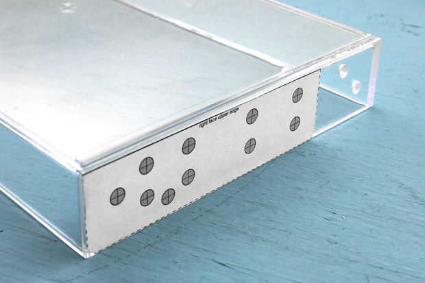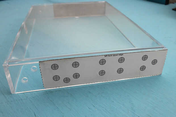 Me gusta montar Bits utilizando una cuadrícula de precisamente coloca 1/4" agujeros que sus pies pueden sólo pop en. Si haces esto cuidadosamente, los Bits se encajan y sujetar firmemente, pero siendo fáciles de quitar si se quiere utilizar para otra cosa. También se ve bonito y limpio. El lado negativo es que tienes que localizar y perforar con un grado bastante alto de precisión. Si algo no iría a todos eso problemas, tiras de cinta de espuma doble faz de 1" están mucho más rápido y casi como segura. Si quieres ir a la ruta de la cinta de la espuma, puede omitir el proceso de la plantilla completamente.