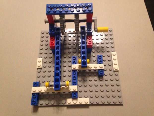 Este es el segundo de una serie de 3 ascensores nuevos en nuestra máquina de la bola de k'nex imposible.Esta elevación es bastante pequeña, lo que es útil para espacios pequeños donde tienes que hacer que la bola suba un poco. Ahora, sé que puedes es