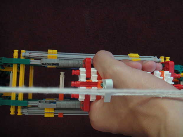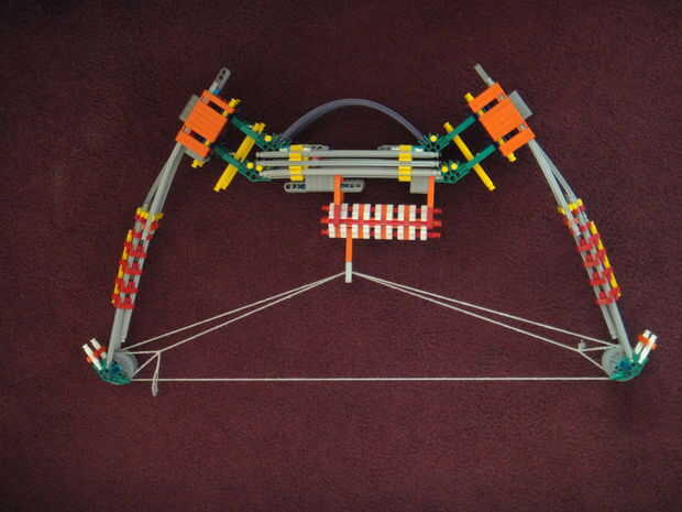 aquí es un arco compuesto que hice usando varios otros diseños de arco de alrededor de la web. He utilizado el k'nex loopin' kit de montaña rusa de rayos para las piezas. Es bastante grande en comparación con la mayoría de los otros arcos en este sit