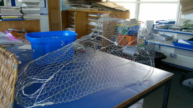 Una vez que la estructura de soporte se hizo tuvo que ser cubierto en algo ligero y de apoyo para lo que será la piel.
