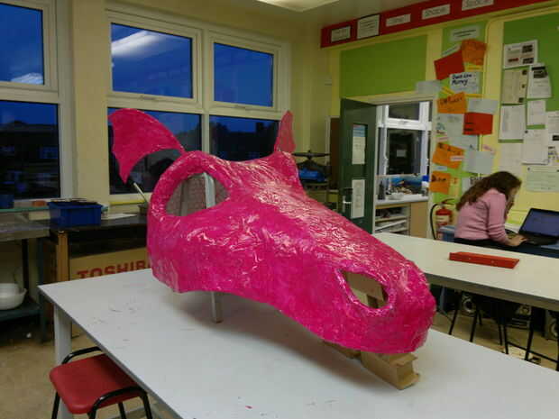 Nuestra escuela está haciendo Shrek este año y me encargué de conjuntos y algunos trajes. Nuestro director pidió un dragón desgaste de la cabeza que un niño podría ordenar en su cabeza/llevar alrededor. Con muy poco presupuesto, este fue mi mejor int