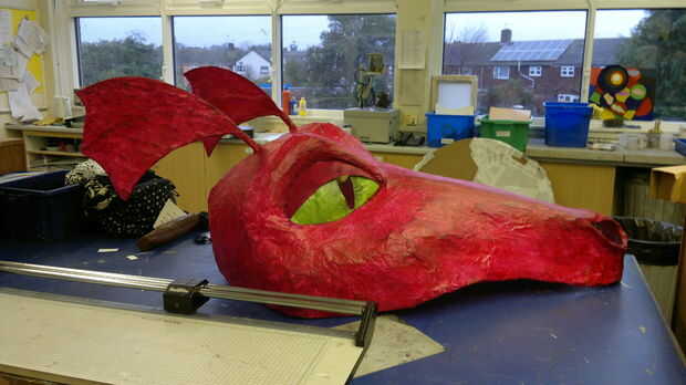 Nuestra escuela está haciendo Shrek este año y me encargué de conjuntos y algunos trajes. Nuestro director pidió un dragón desgaste de la cabeza que un niño podría ordenar en su cabeza/llevar alrededor. Con muy poco presupuesto, este fue mi mejor int